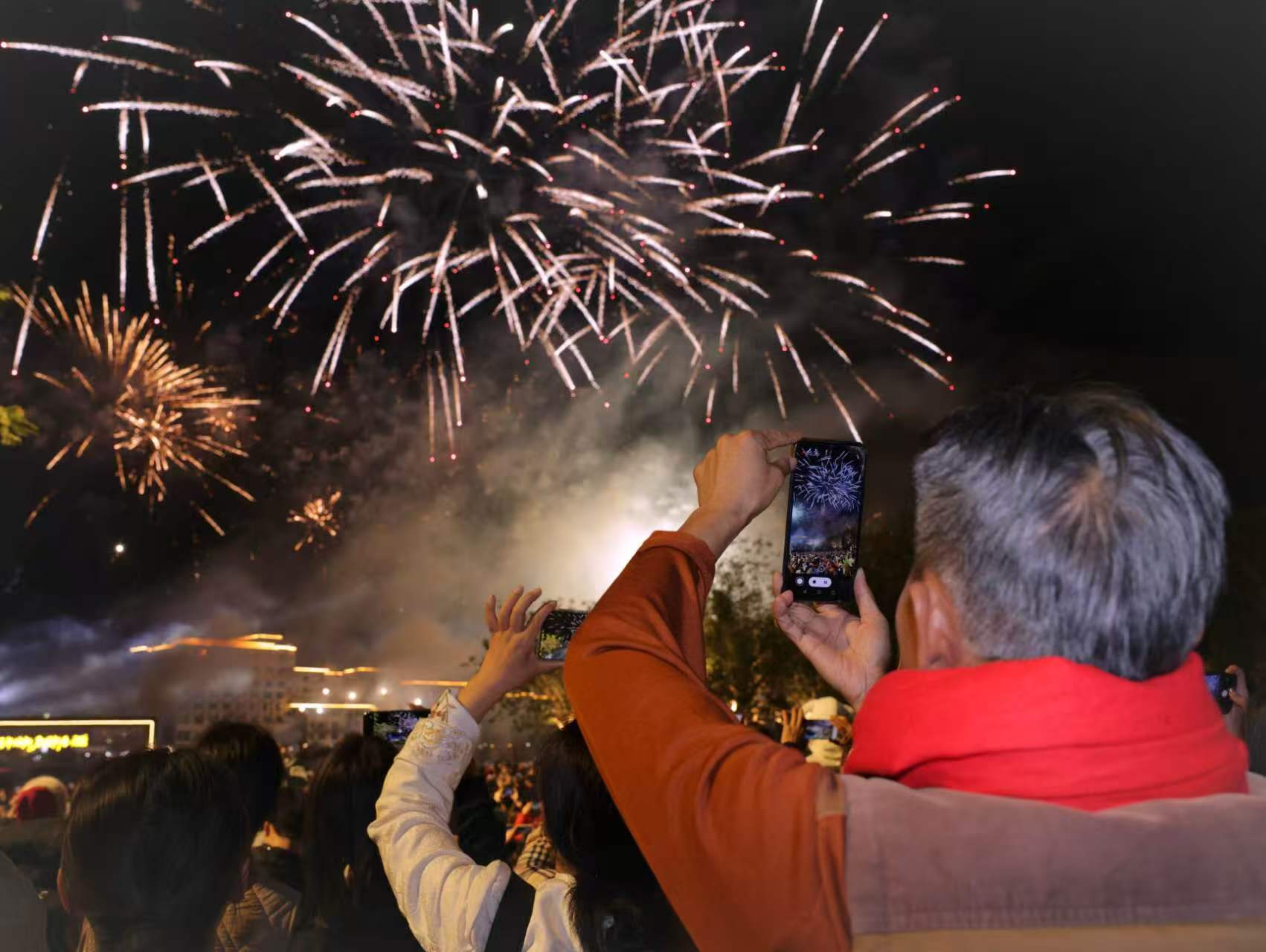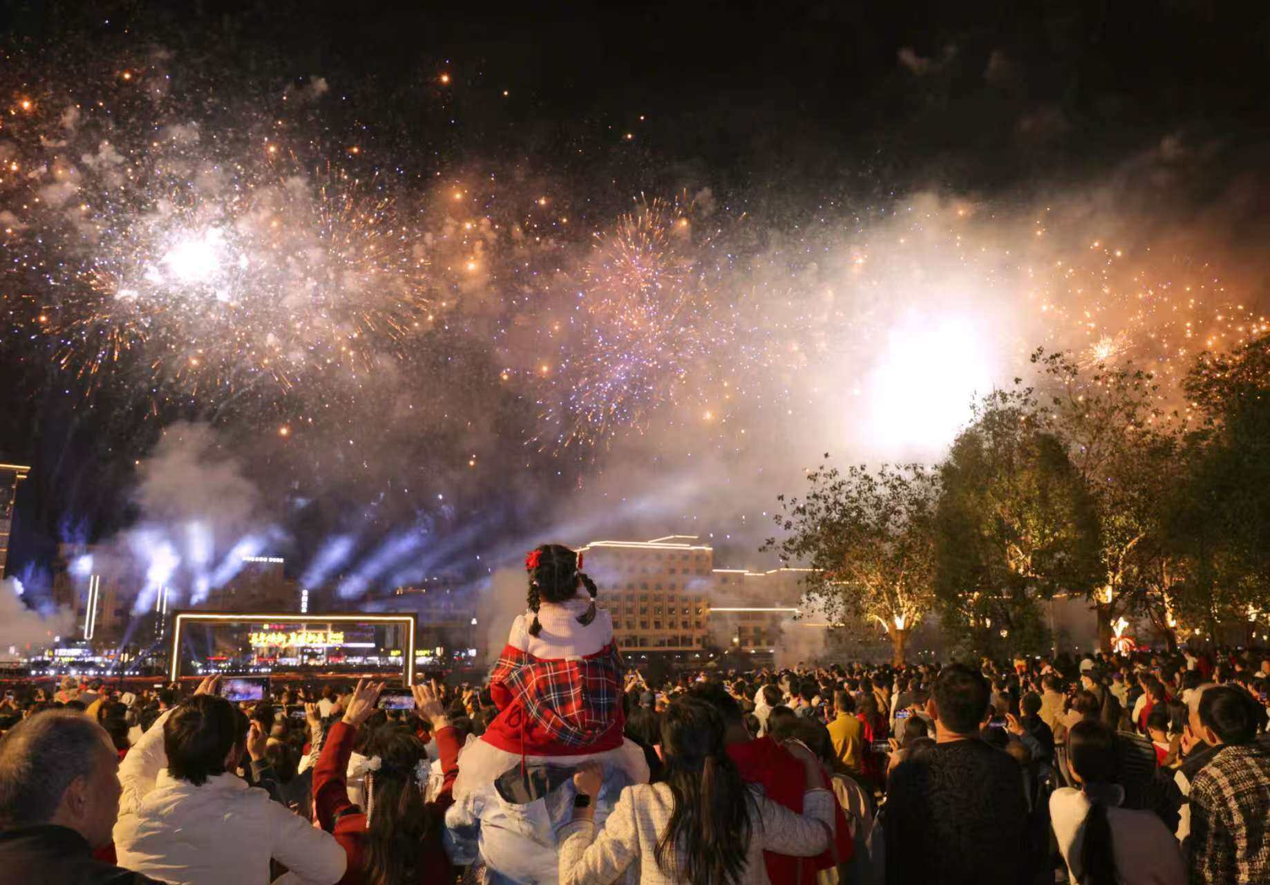 紧随其后,长达17分钟的主题烟花汇演将气氛推向高潮。整场焰火以“骏马踏福至、春回暖融城、驰骋向未来”三篇章叙事,通过“马踏瑞雪”“金鬃披光”等创意画面,既传递了新春的吉祥祝福,更寄托了如骏马奔腾般的奋进豪情,完美呼应了2026丙午马年的时代主题。