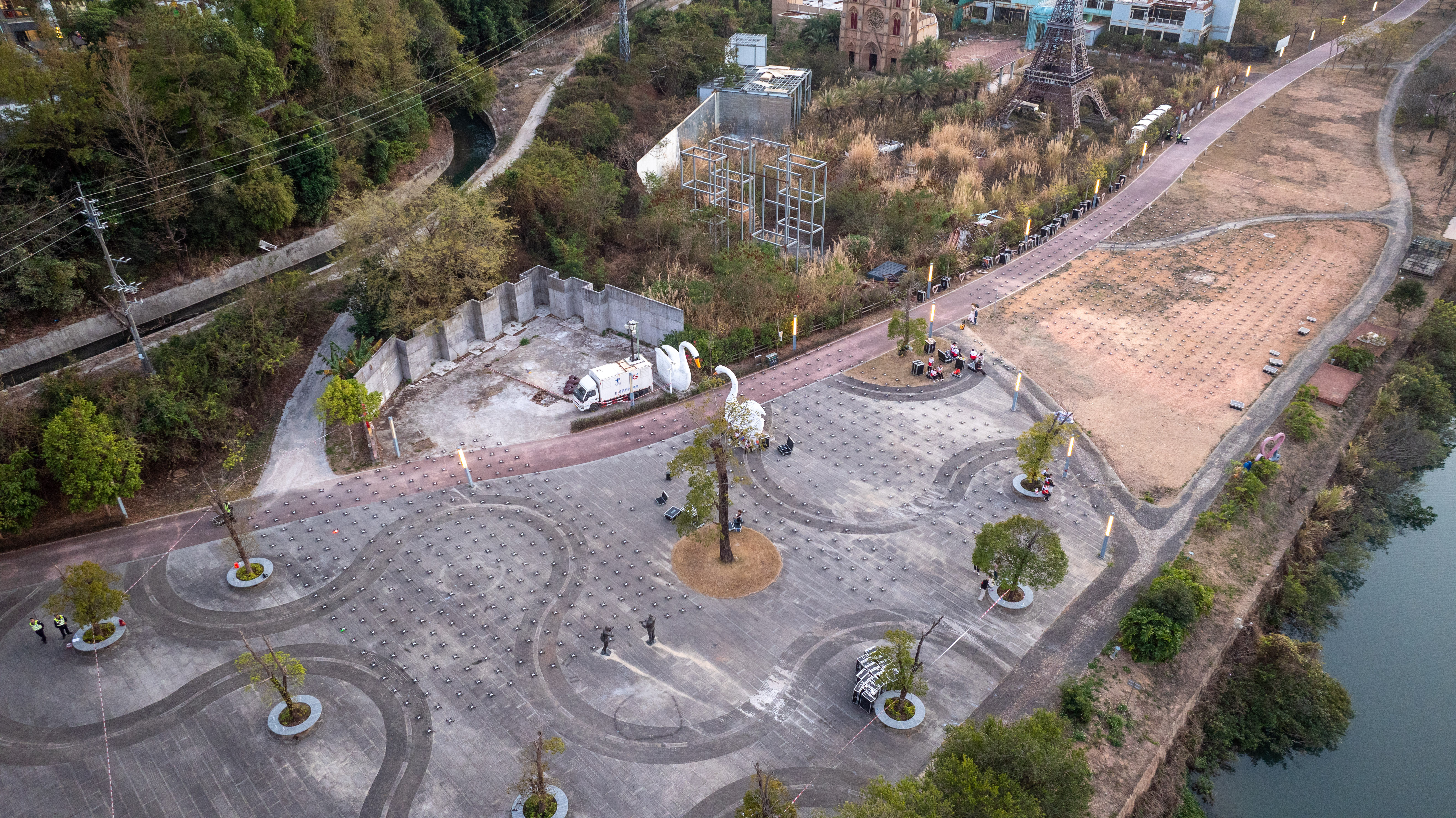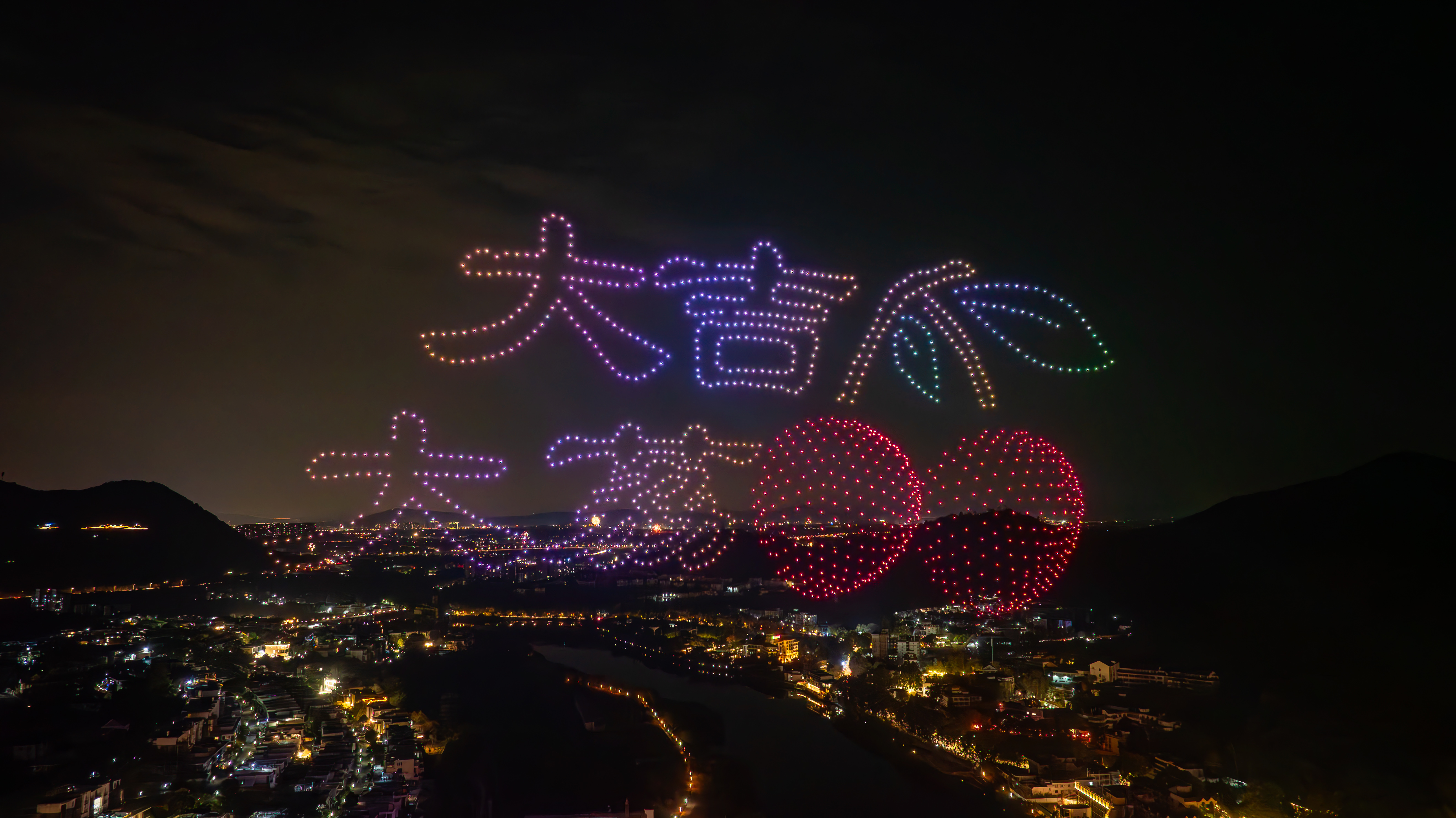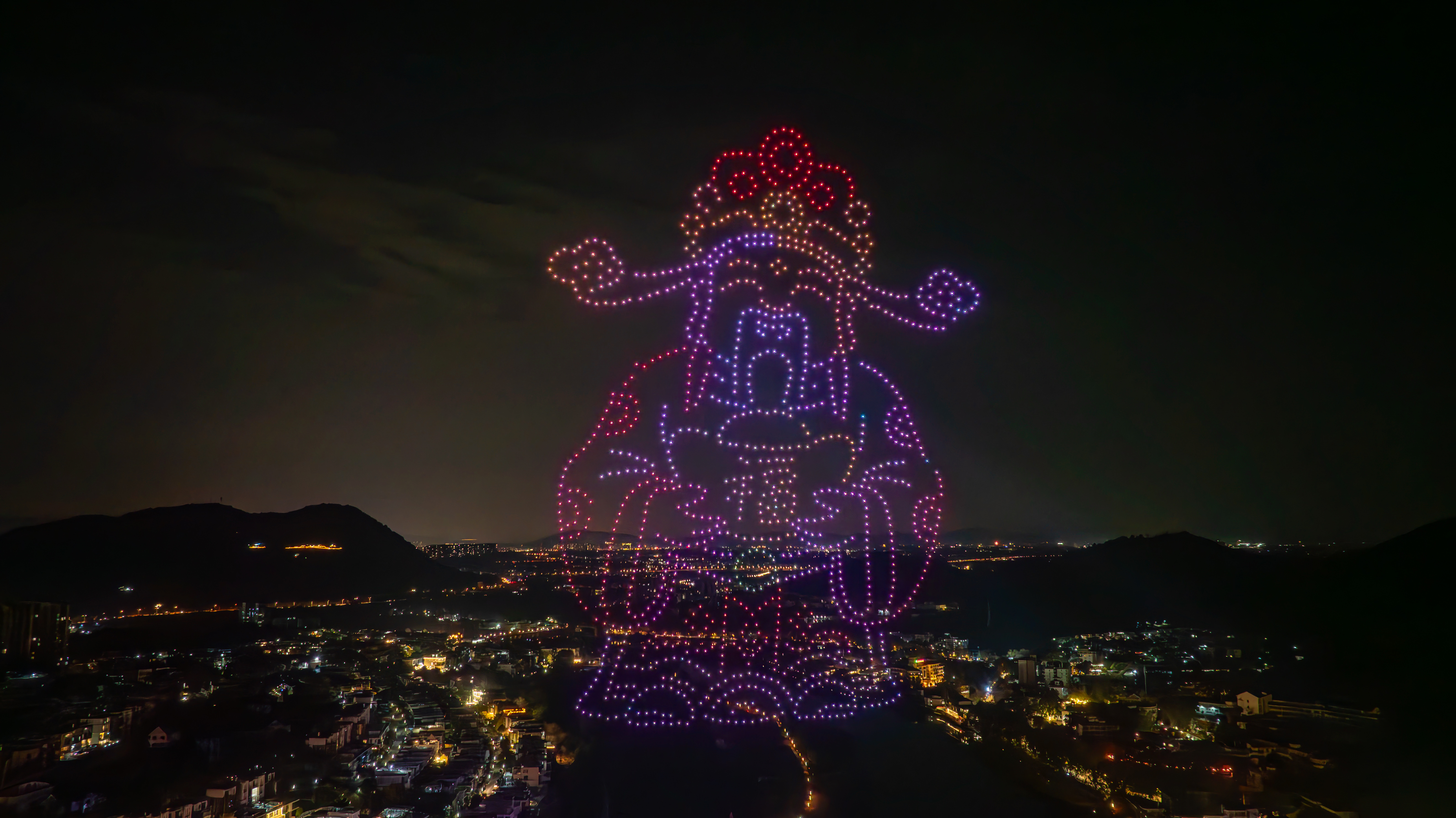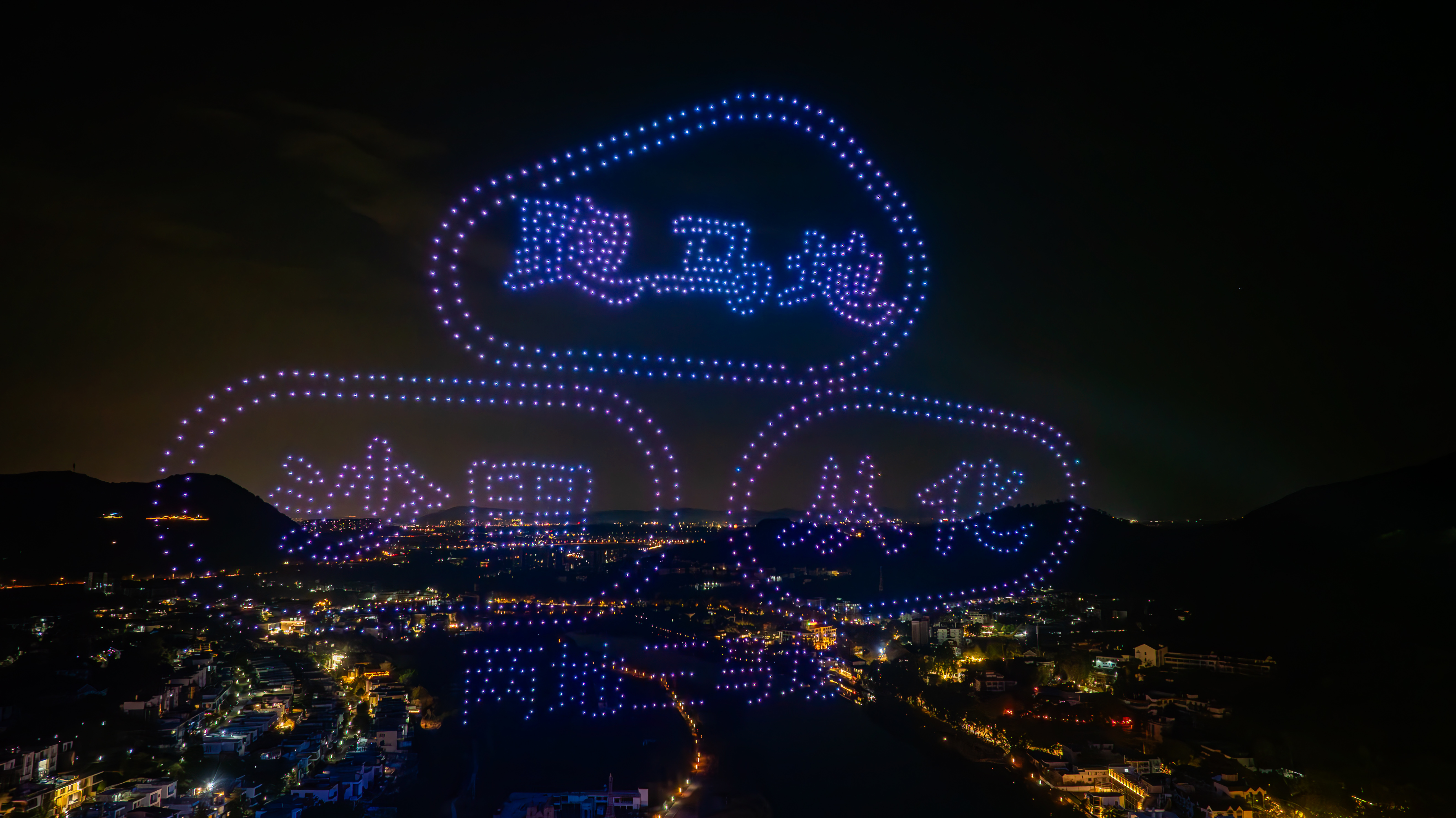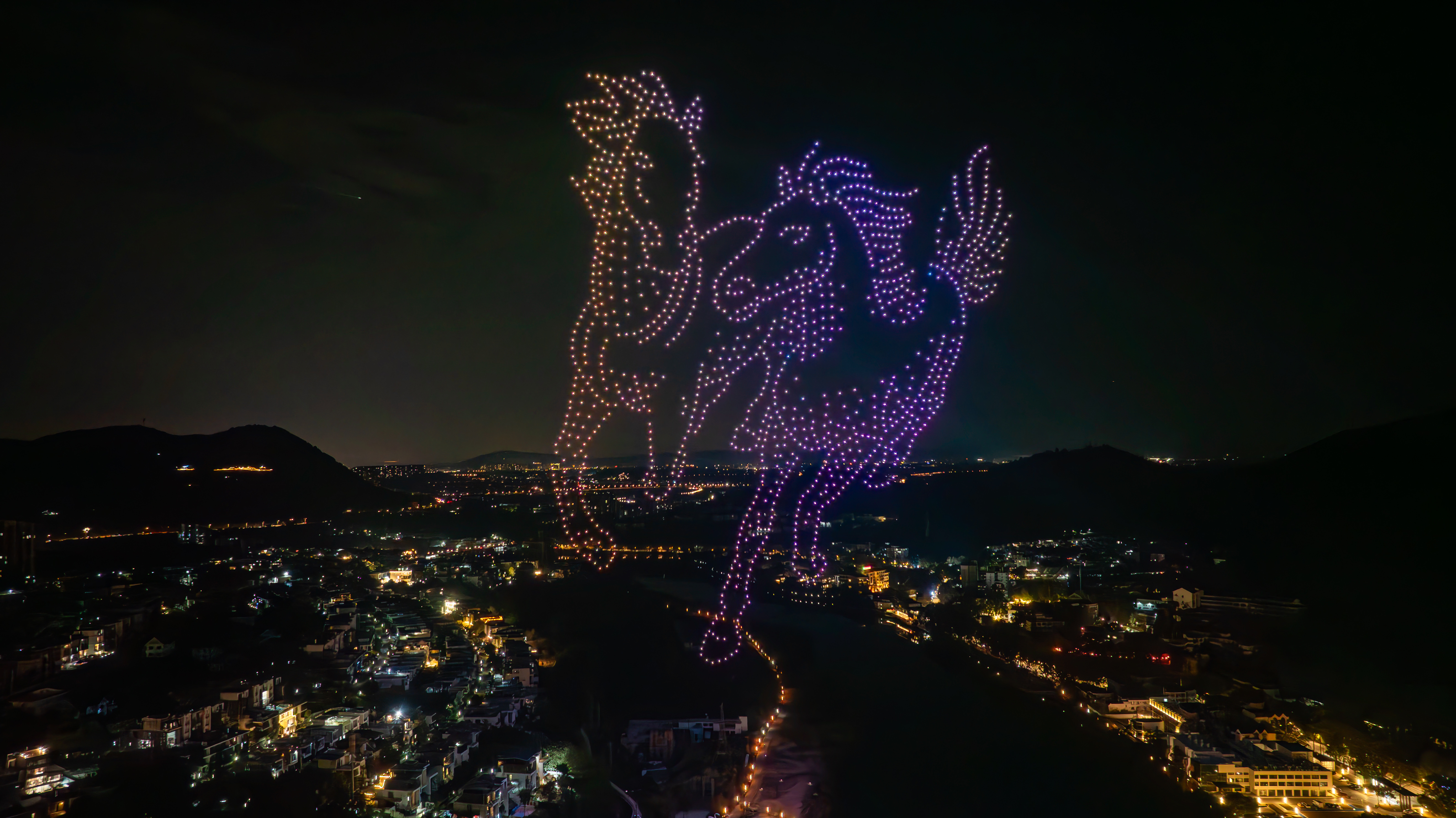 启动仪式后,万众期待的低空光影秀震撼登场。1200架无人机腾空而起,在流溪河上空精准编队,依次变换出香港赛马会标志和吉祥物、“两地三马场”的字样、“马年新春”祥瑞字样以及象征从化生态瑰宝的“世界珍稀温泉”等动态画面。光影流转间,一幅融合湾区活力与岭南风韵的空中画卷徐徐展开,引发现场阵阵惊叹。